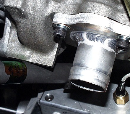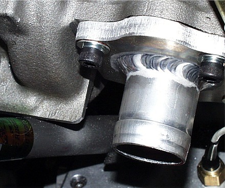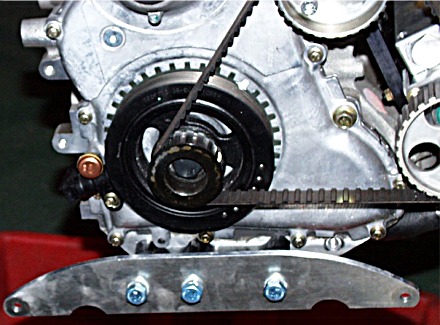 c) Now is a good time to do some other prep work such as knocking down sharp edges and installing the alternator belt. Naturally, I forgot to do both. But to illustrate, here's a particularly nasty bit. The edge on the water pump is quite sharp...you can see it here with the motor installed.