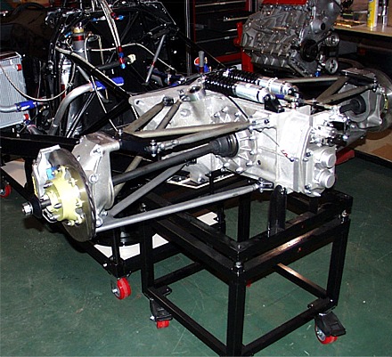 This is a good overall shot of how the transaxle cart relates to the car cart and the car.