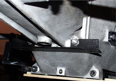We then lower the motor to the floor of the car and bolt the front motor plate to the chassis. The motor plate should rest on the piece of steel angle at the lower edge of the rear bulkhead. We also make a change to one of the supplied fasteners. On the LEFT side of the car, we use a hex head bolt in lieu of the supplied socket head part. The reason for this is the ease of getting a ratchet in this location. On the right side of the car, we leave the socket head bolt because it's quite open on the right side and easy to tighten the bolt with a hex ball driver. BTW, the required hex head bolt is an 8mm x 1.25 x 50mm part.