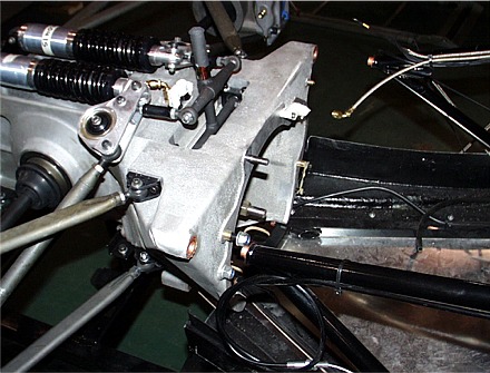 Now we've removed the bolts holding the transaxle to the chassis and pulled the transaxle away from the frame.